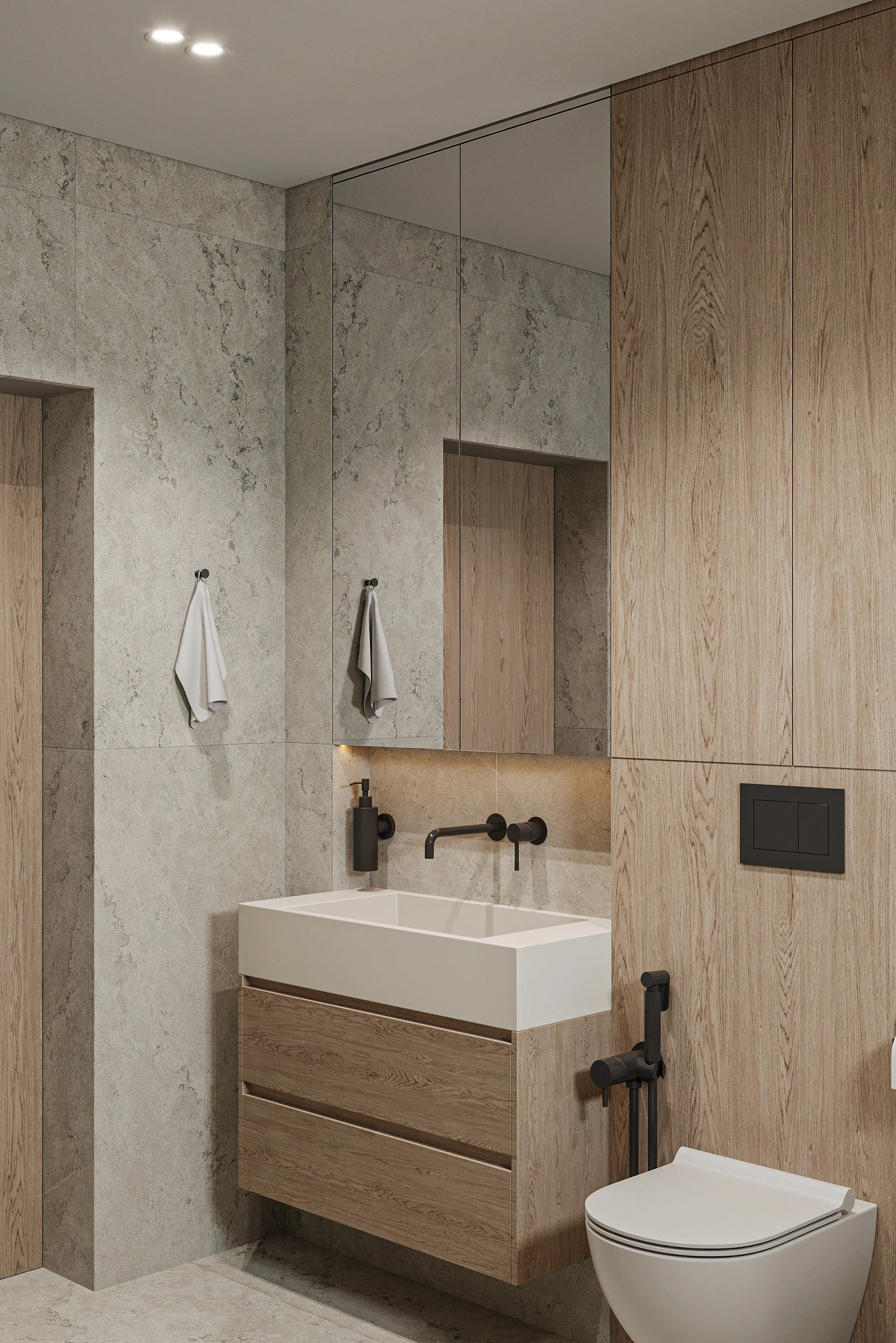Даний інтер’єр про природність, м’яке світло та комфорт, який відчувається у кожній деталі. Тепле дерево, спокійні текстури та світлі поверхні створюють атмосферу, де хочеться жити повільніше. Простір продуманий так, щоб бути легким, функціональним і водночас по-справжньому домашнім. Тут кожен день починається з тепла, а вечори приносять затишок.