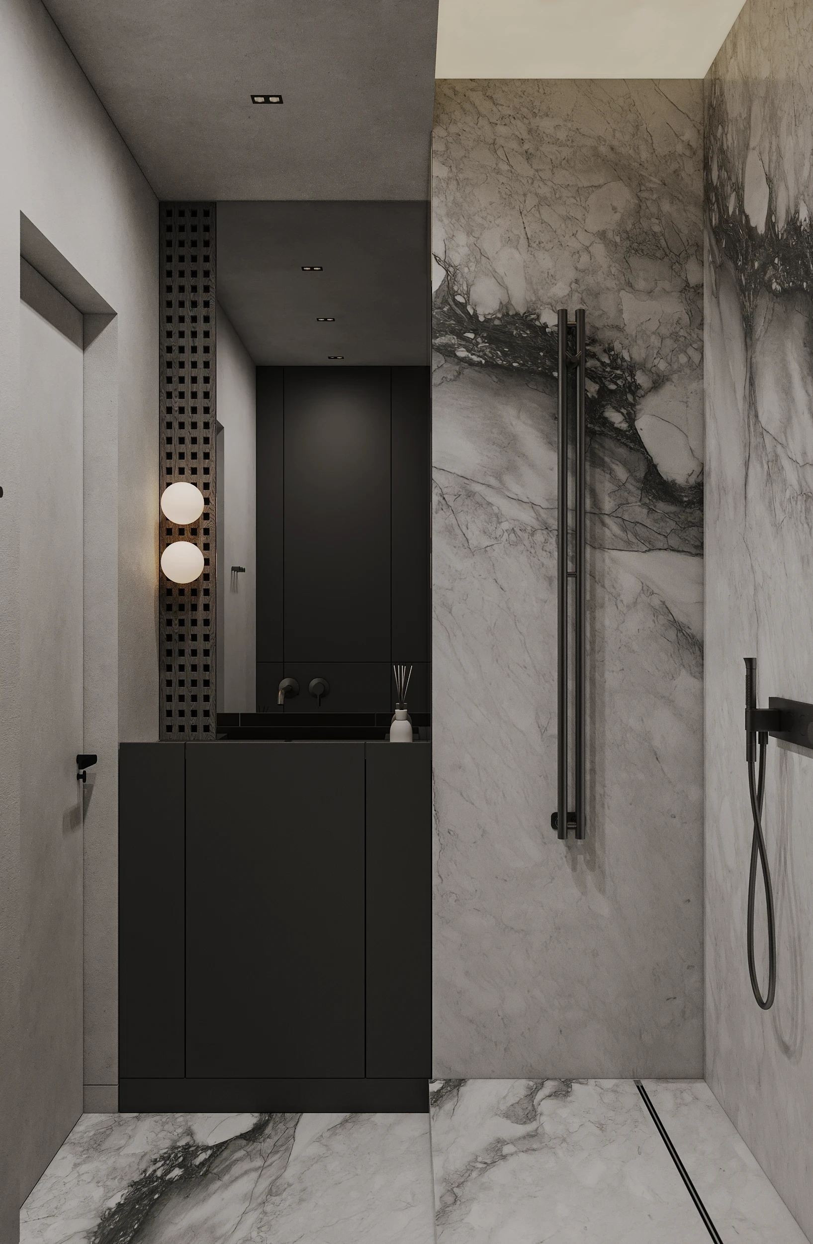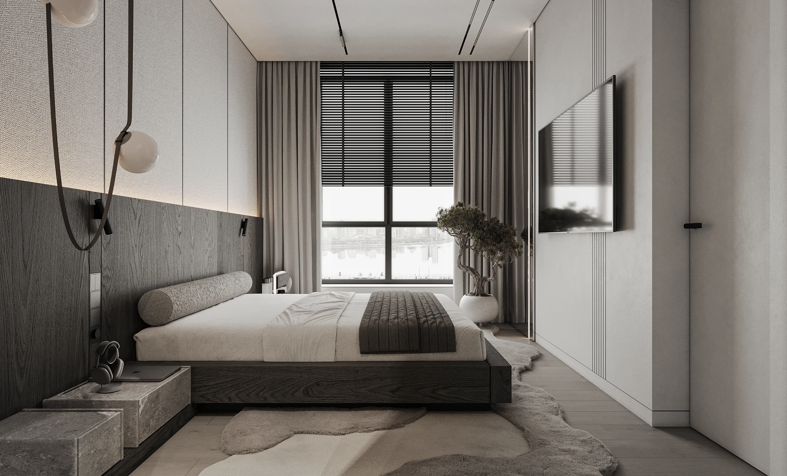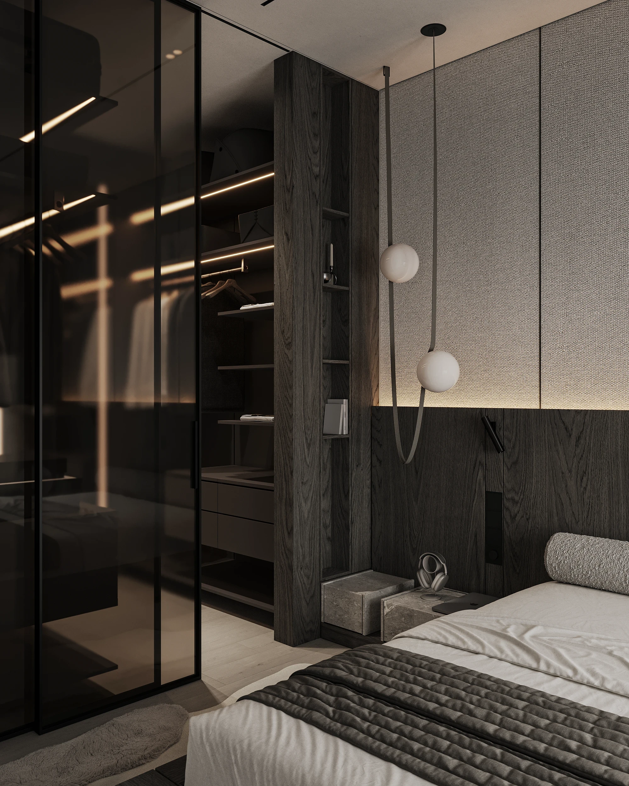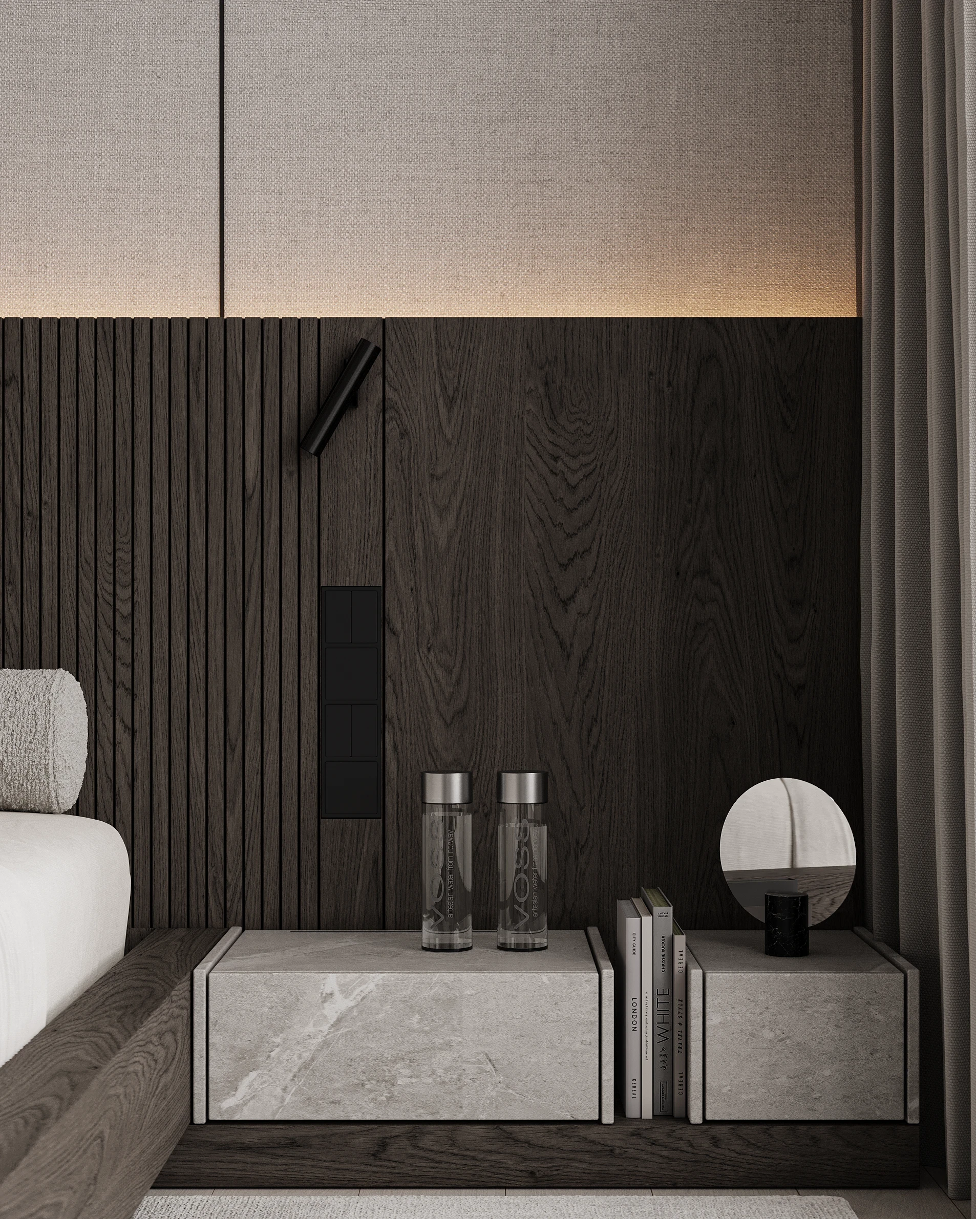 Інтер’єр, у якому камінь стає ритмом, а світло — м’яким продовженням форми. Простір побудований на стриманих текстурах, точних лініях та твердих матеріалах, що створюють атмосферу повної рівноваги. Тут кожна поверхня промовляє про якість, а кожен об’єм існує заради комфорту. Це проєкт, що поєднує монолітність і спокій, дозволяючи відчути власний темп життя.