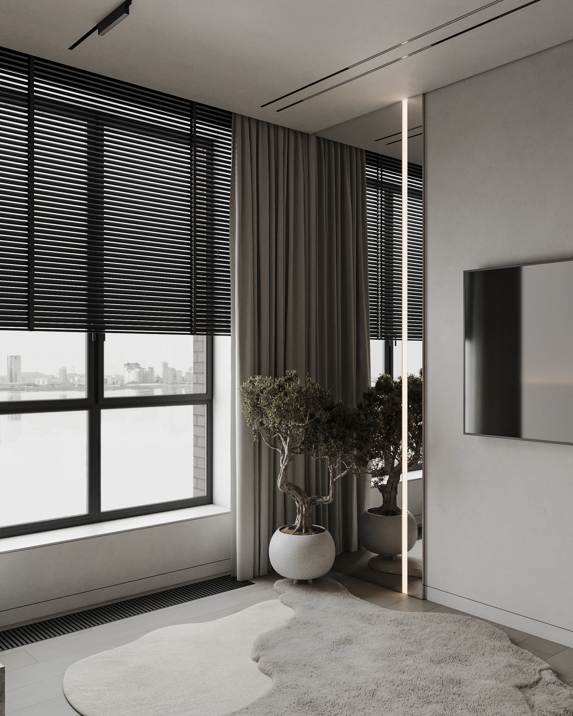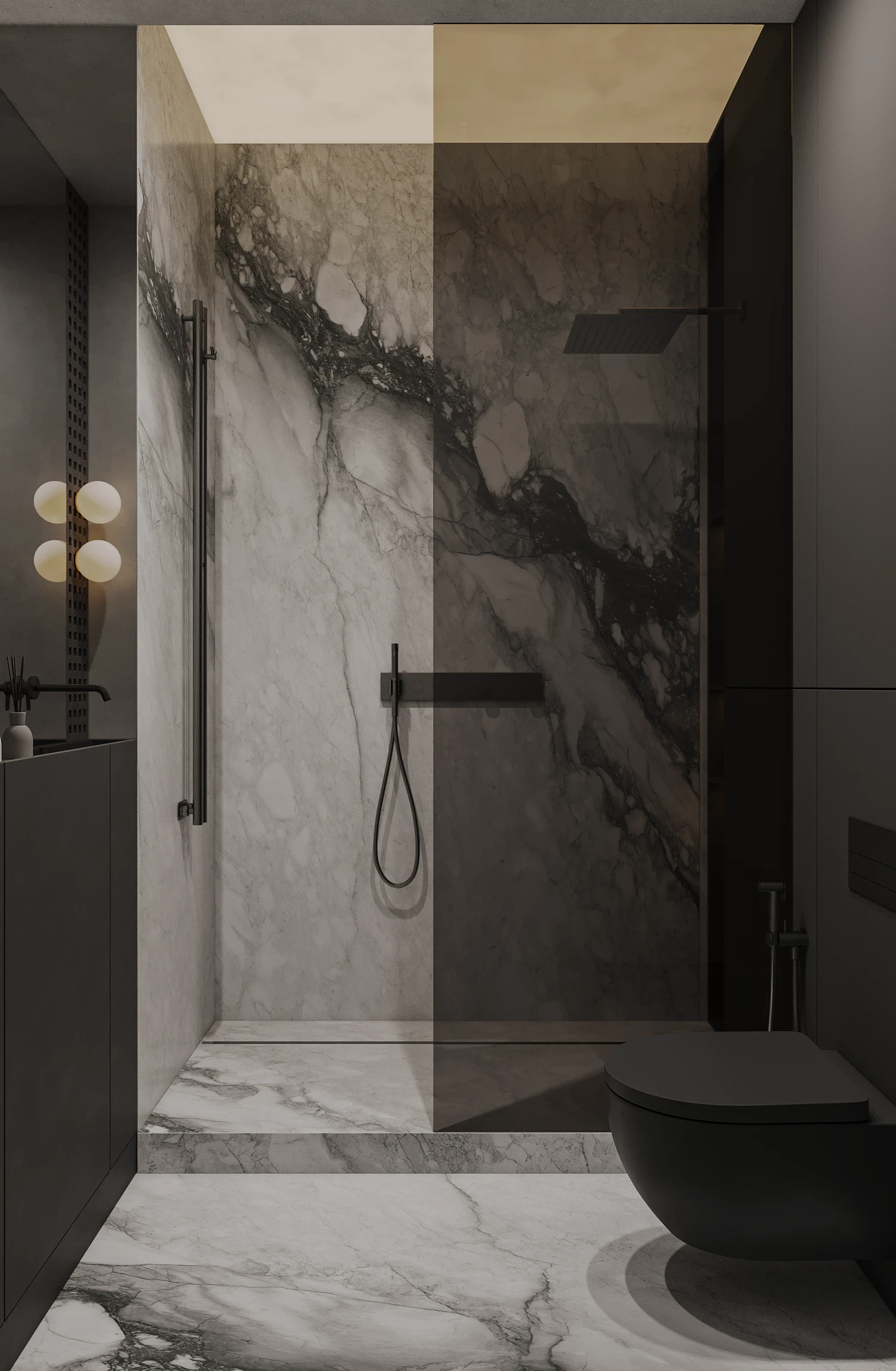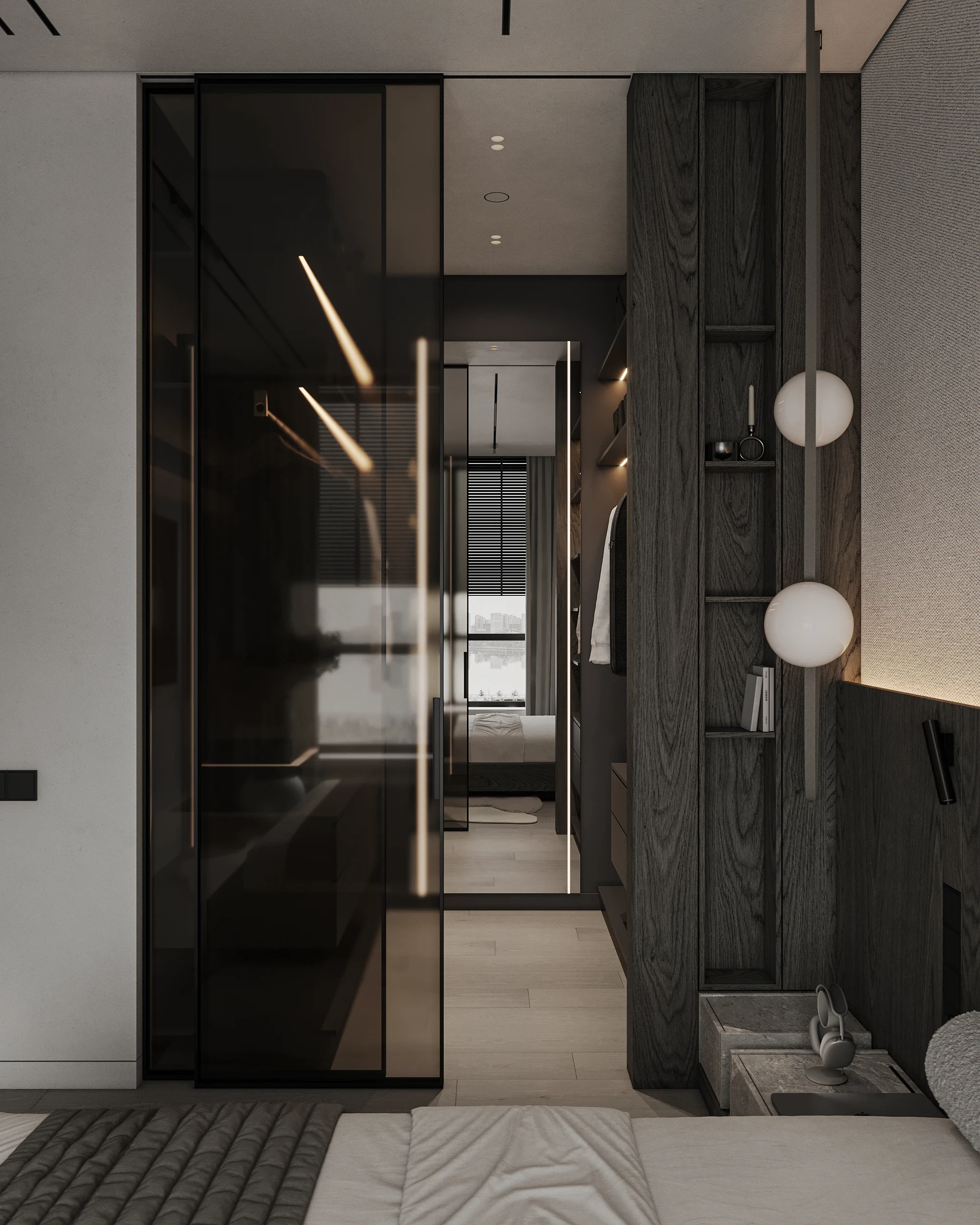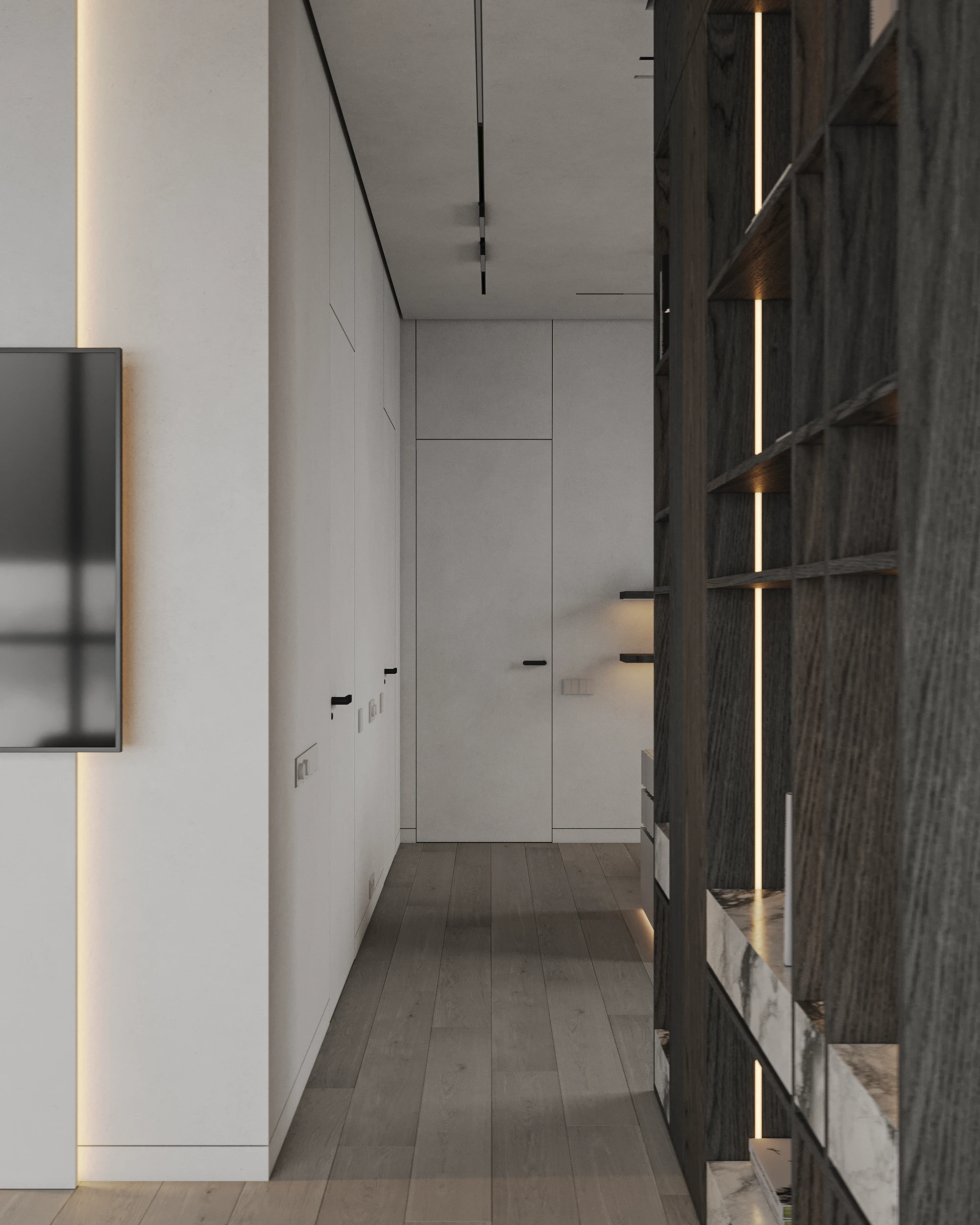 Інтер’єр, у якому камінь стає ритмом, а світло — м’яким продовженням форми. Простір побудований на стриманих текстурах, точних лініях та твердих матеріалах, що створюють атмосферу повної рівноваги. Тут кожна поверхня промовляє про якість, а кожен об’єм існує заради комфорту. Це проєкт, що поєднує монолітність і спокій, дозволяючи відчути власний темп життя.