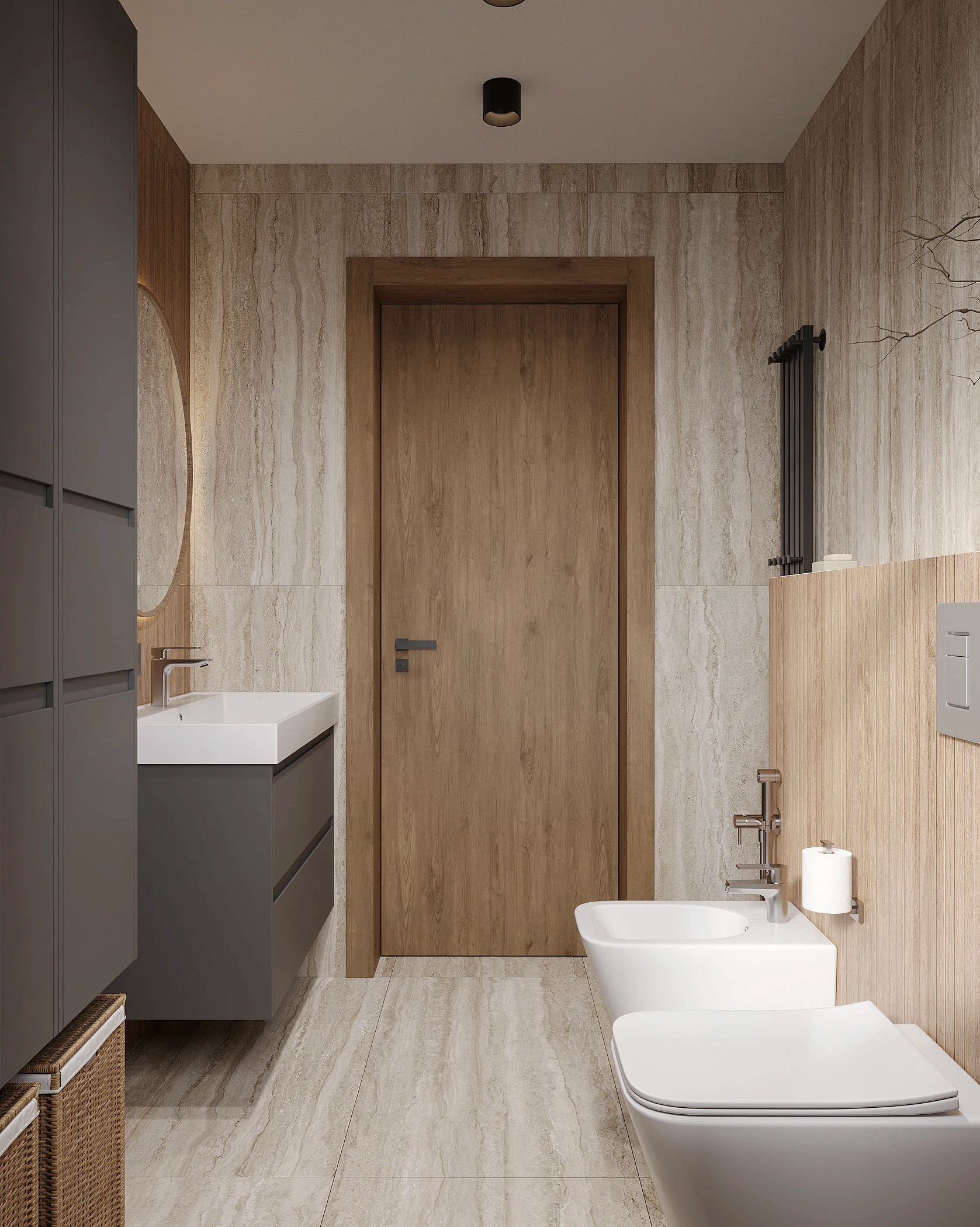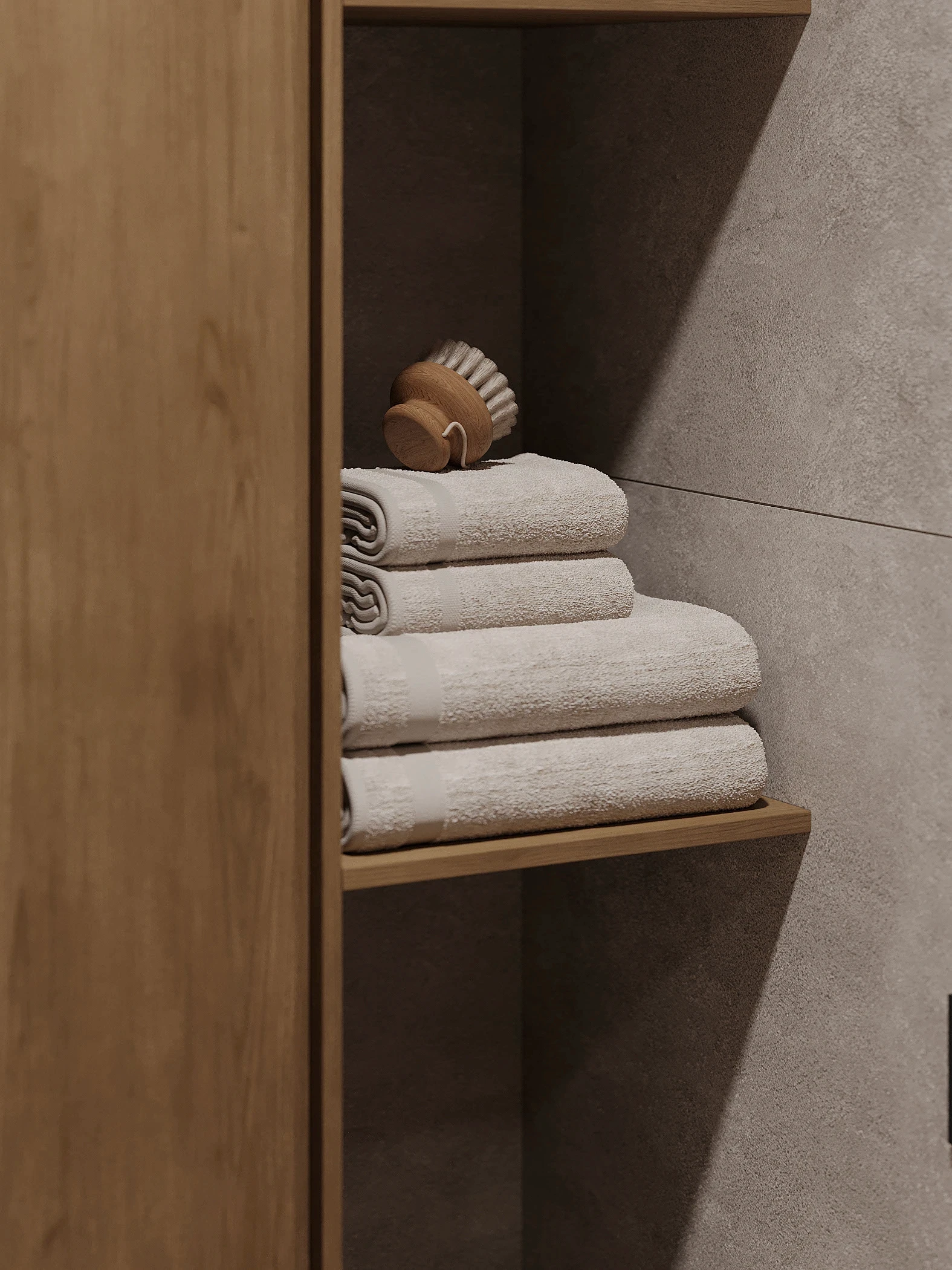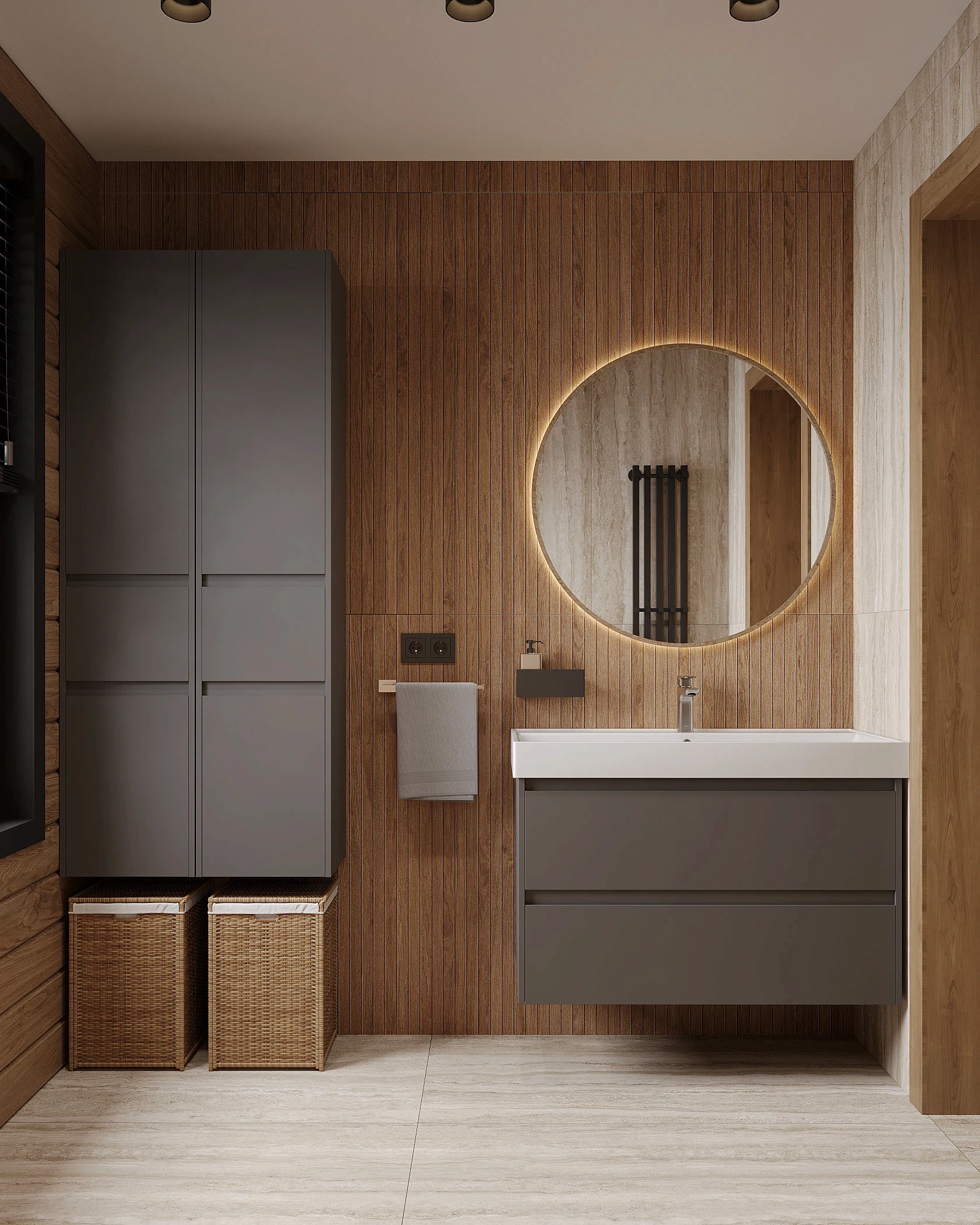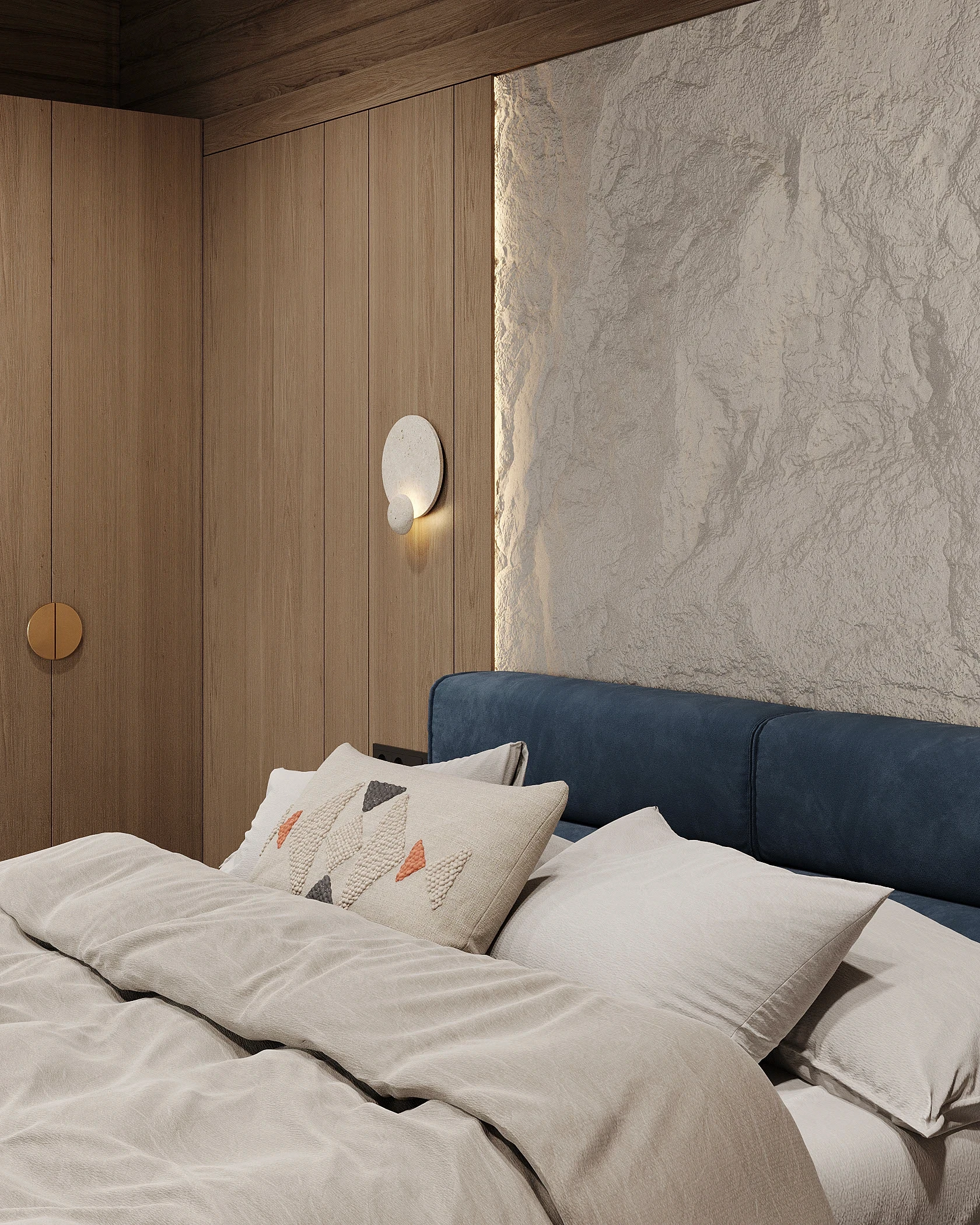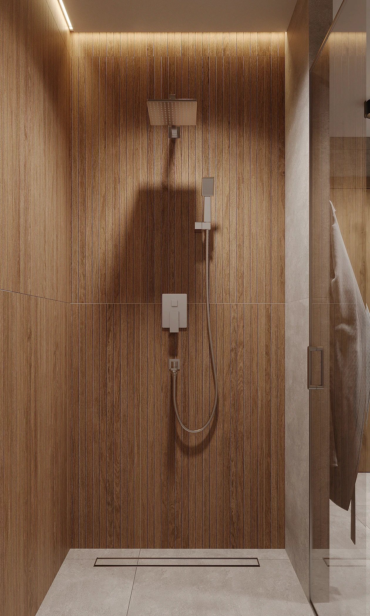 Інтер’єр, у якому природа стає частиною простору. Тепле дерево, м’які відтінки та зелений акцент створюють атмосферу спокою і глибини. Простір побудований на тактильності: гладка деревина, камін, м’які тканини й природне світло формують відчуття домашнього тепла.