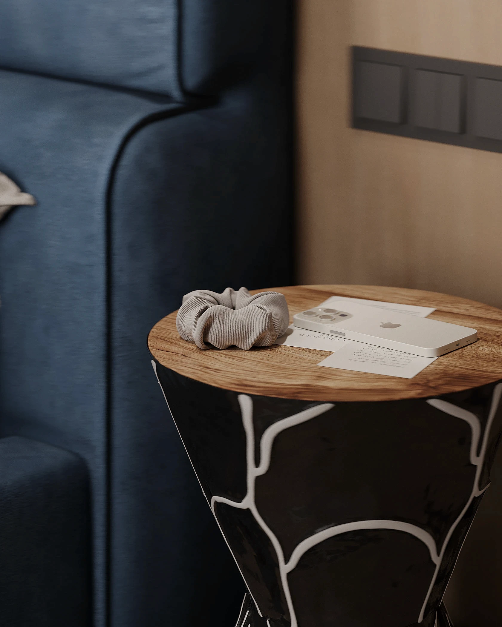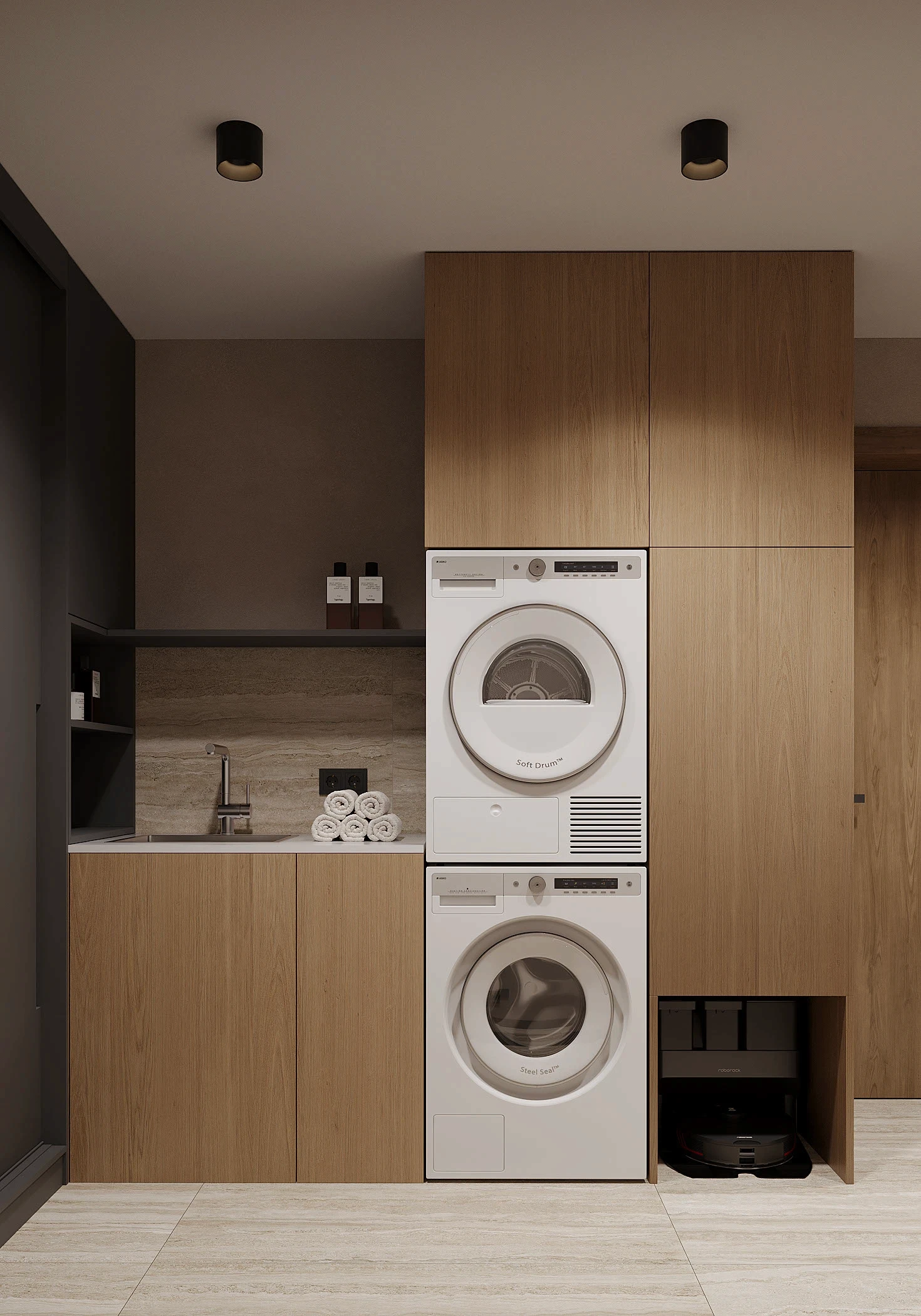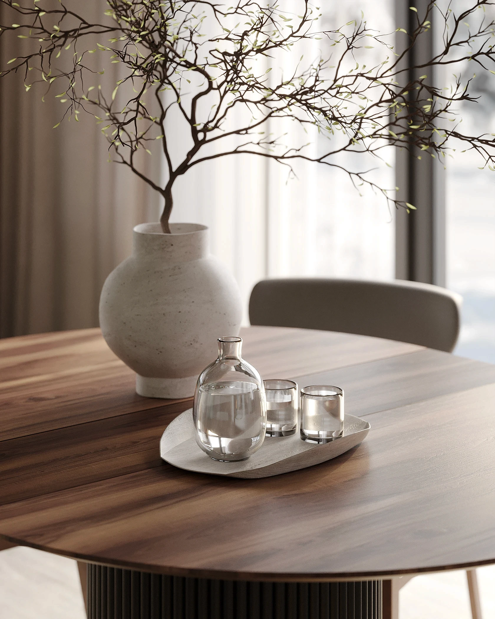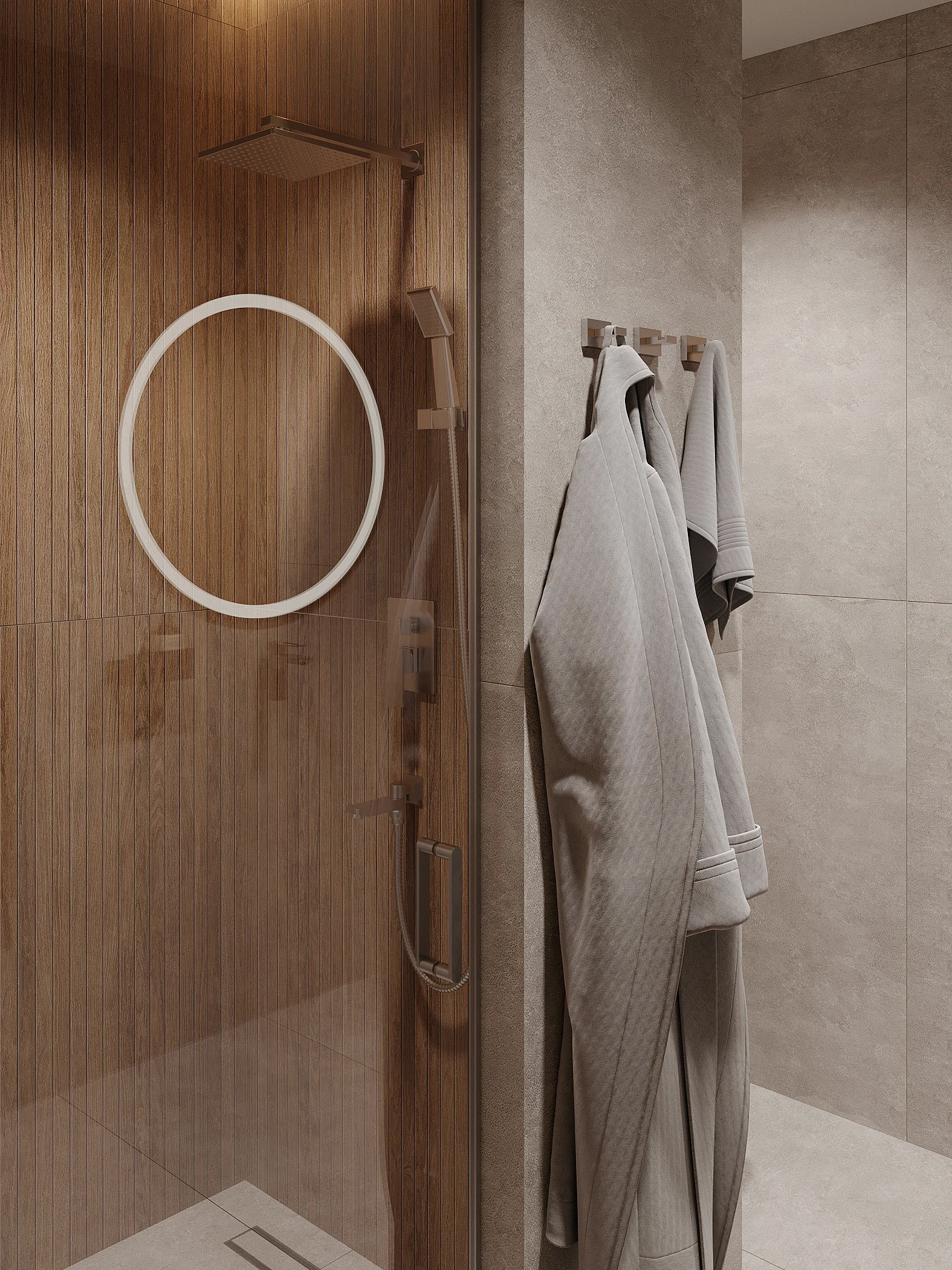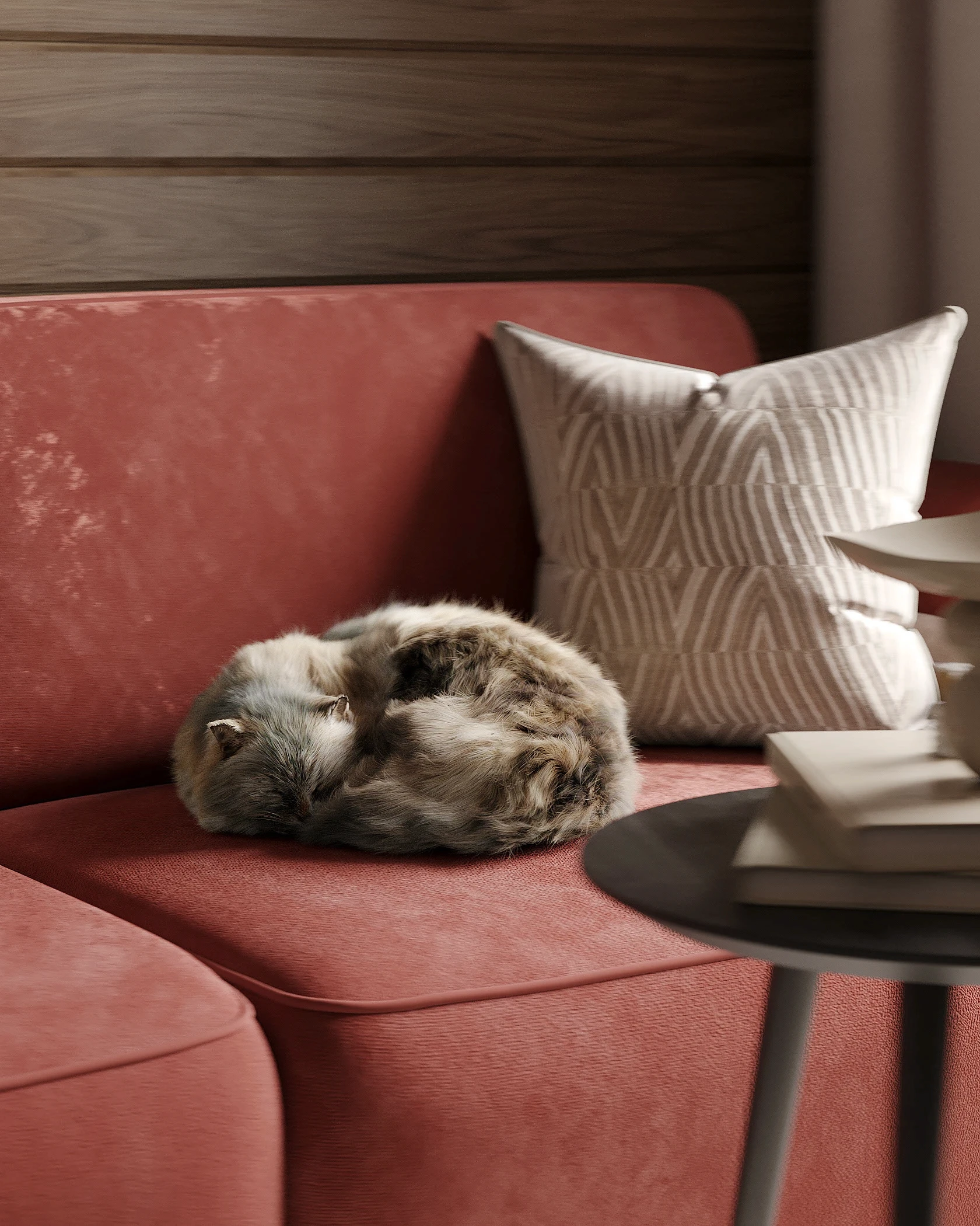 Інтер’єр, у якому природа стає частиною простору. Тепле дерево, м’які відтінки та зелений акцент створюють атмосферу спокою і глибини. Простір побудований на тактильності: гладка деревина, камін, м’які тканини й природне світло формують відчуття домашнього тепла.